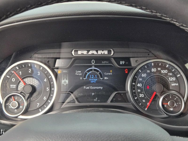 Available with several V-6 and V-8 engines, the Ram 1500 features an eight-speed automatic transmission. It can tow up to 12,750 pounds along with 2,320 pounds payload capacity.